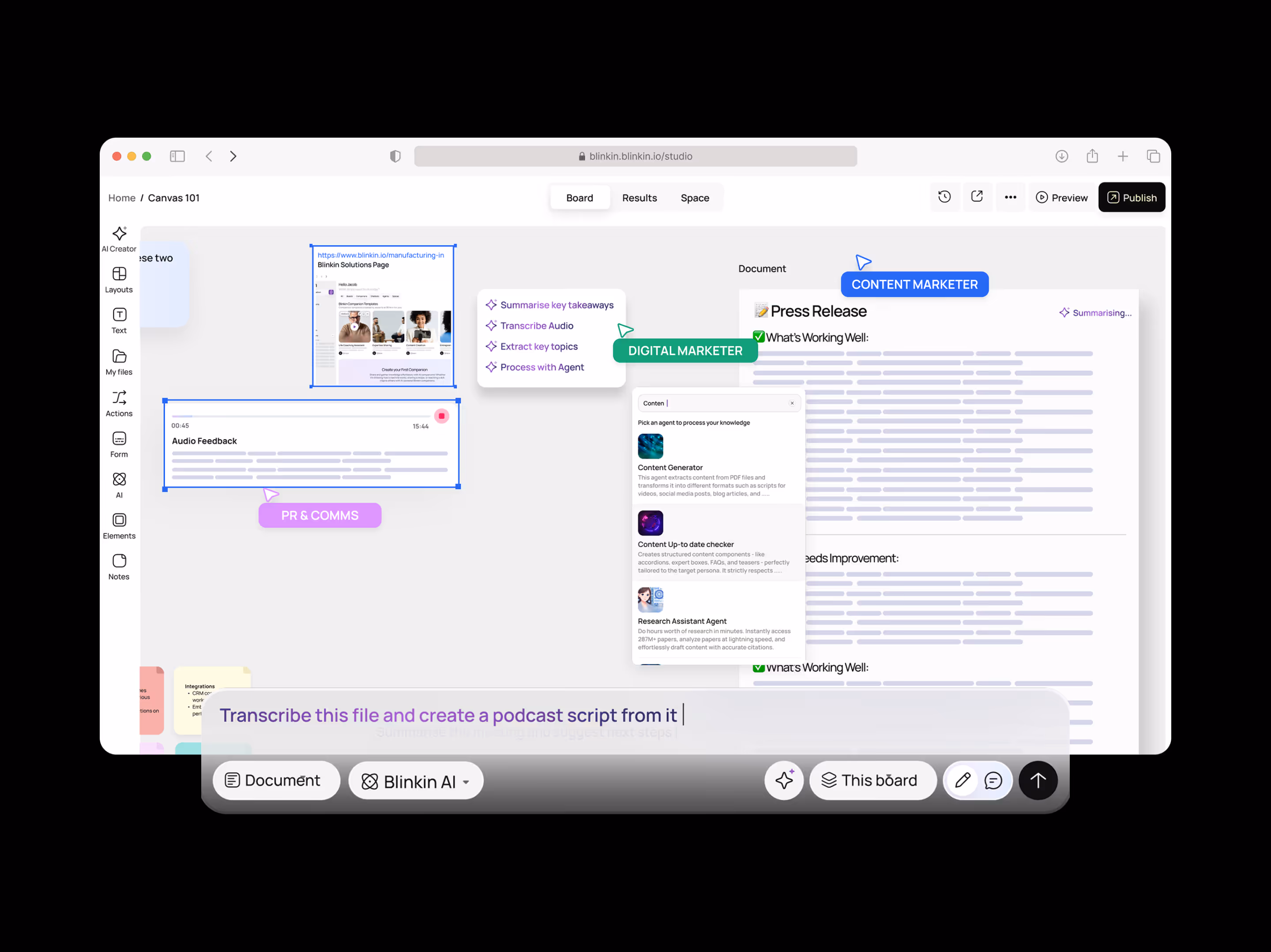 Blinkin's no-code studio puts multimodal, logic-driven AI application building in the hands of the people who know the work best.Domain experts can upload their manuals, videos, and notes and turn that knowledge into interactive AI applications. No code. No waiting for IT. No ideas lost in the backlog.If your organization is ready to move AI innovation out of the queue and into the hands of your experts, explore how Blinkin can help.